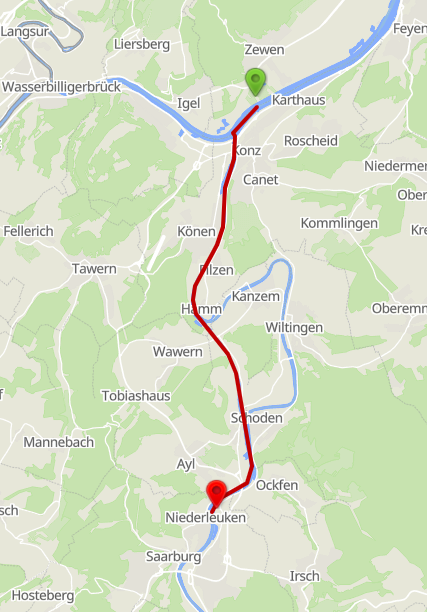Moselle (Mozel, Moezel) until we are at the Yachthafen WSC Konz (KM 200) where there
